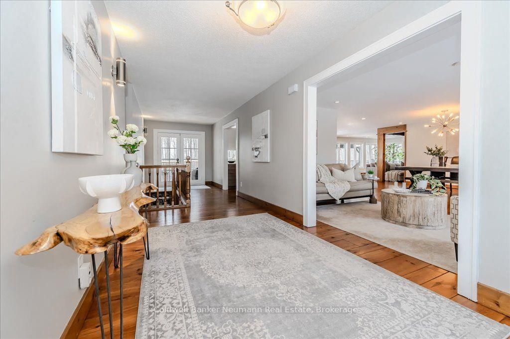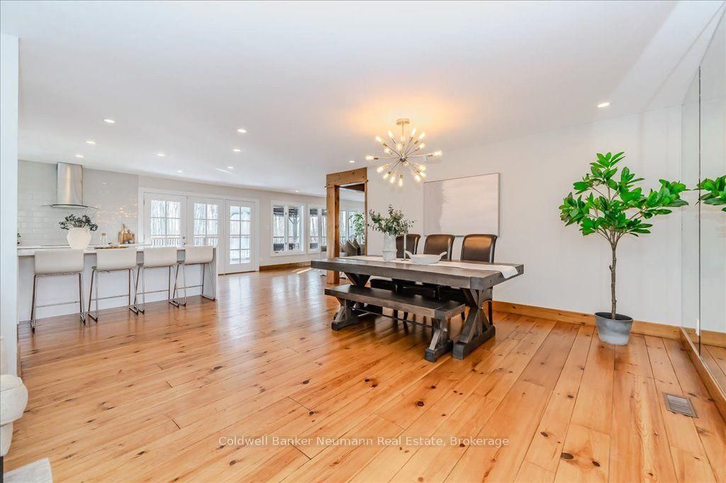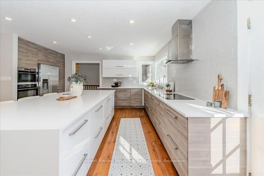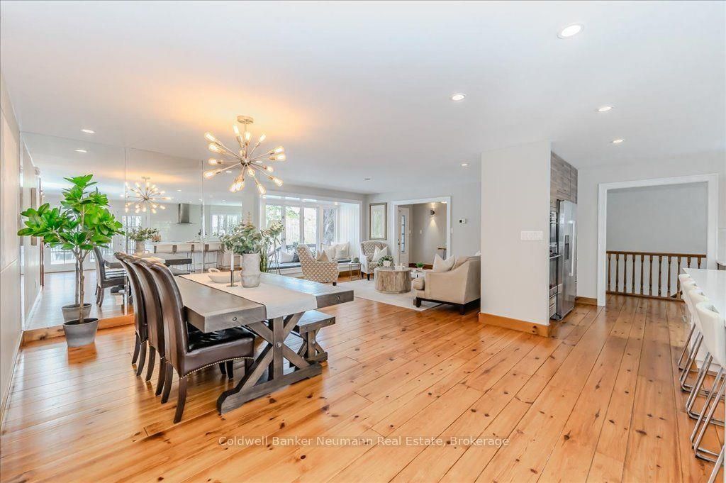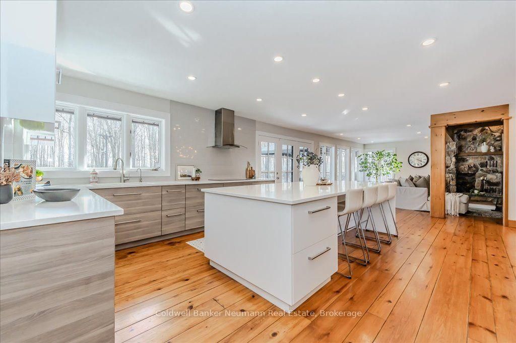 A rare rural retreat just minutes from Guelph and Cambridge, this extraordinary countryside estate blends luxury, comfort, and versatility on nearly two acres of landscaped land. The sprawling bungalow offers over 4,000 sq. ft. of impeccably finished living space, a 3-car attached garage, and an additional 2-car workshop—perfect for storage or creative projects. The main floor features rustic pine plank flooring, a gourmet kitchen, and a spa-like ensuite. The fully finished lower level nearly doubles the living space with a rec room, walkout access, and a separate entrance—ideal for multi-generational living or income potential.