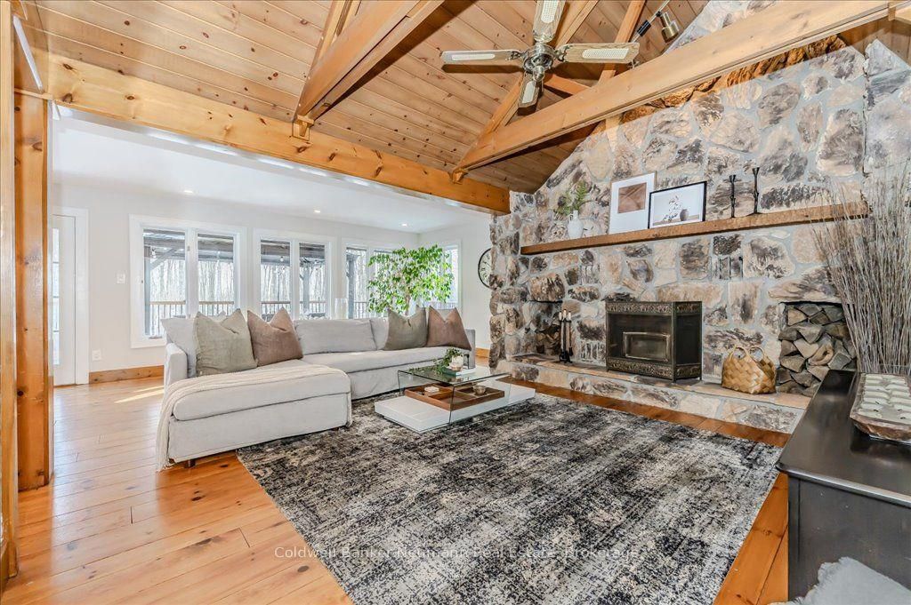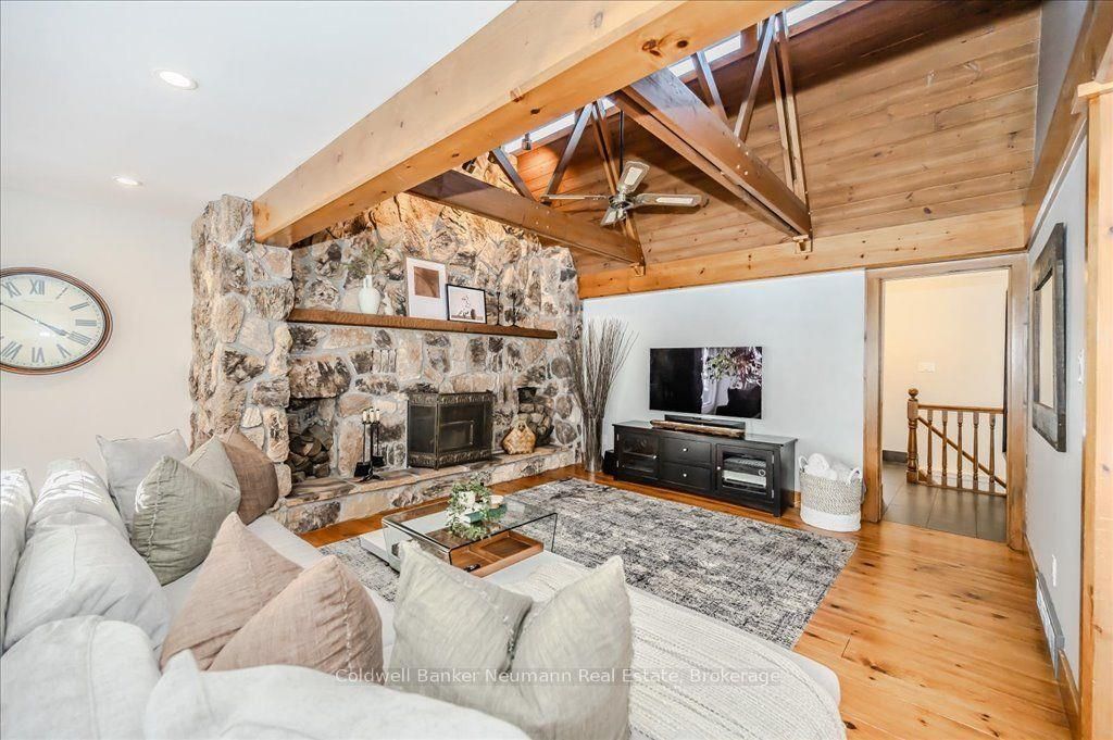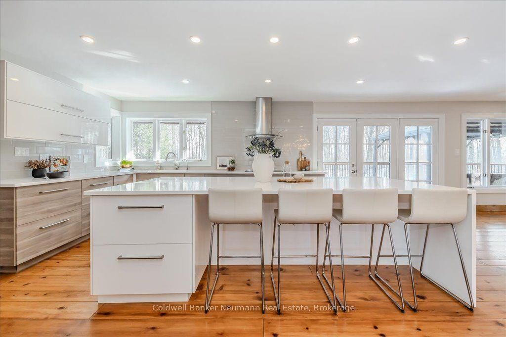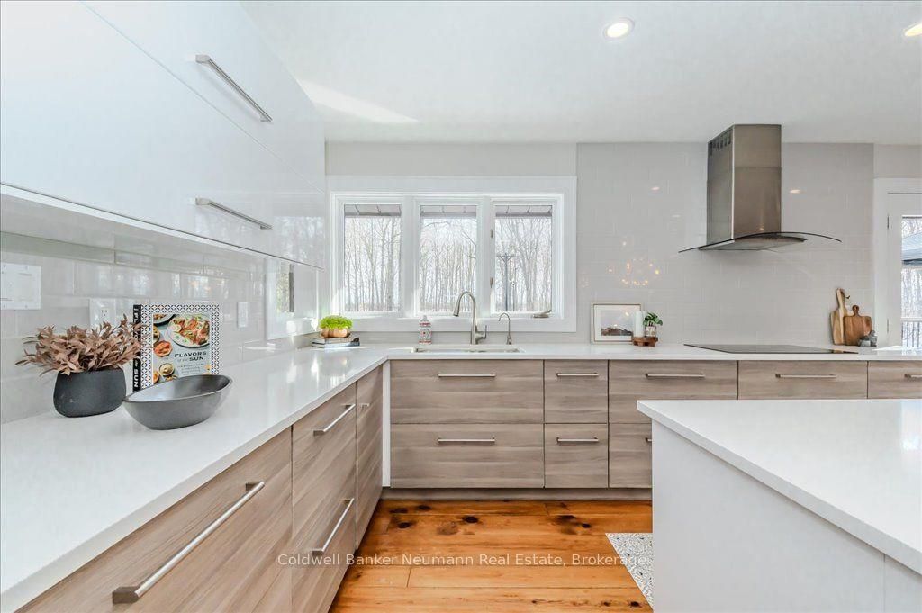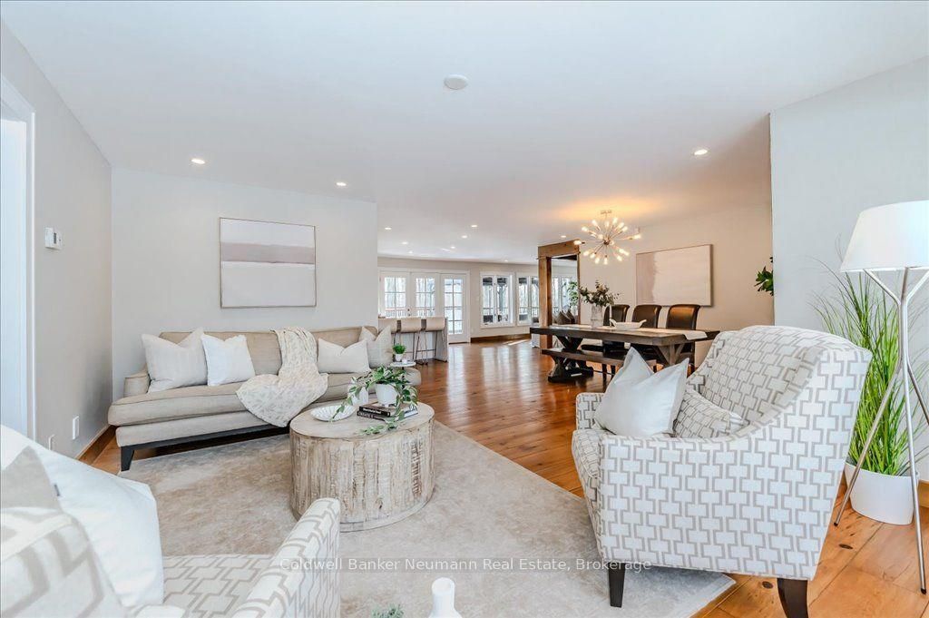 A rare rural retreat just minutes from Guelph and Cambridge, this extraordinary countryside estate blends luxury, comfort, and versatility on nearly two acres of landscaped land. The sprawling bungalow offers over 4,000 sq. ft. of impeccably finished living space, a 3-car attached garage, and an additional 2-car workshop—perfect for storage or creative projects. The main floor features rustic pine plank flooring, a gourmet kitchen, and a spa-like ensuite. The fully finished lower level nearly doubles the living space with a rec room, walkout access, and a separate entrance—ideal for multi-generational living or income potential.